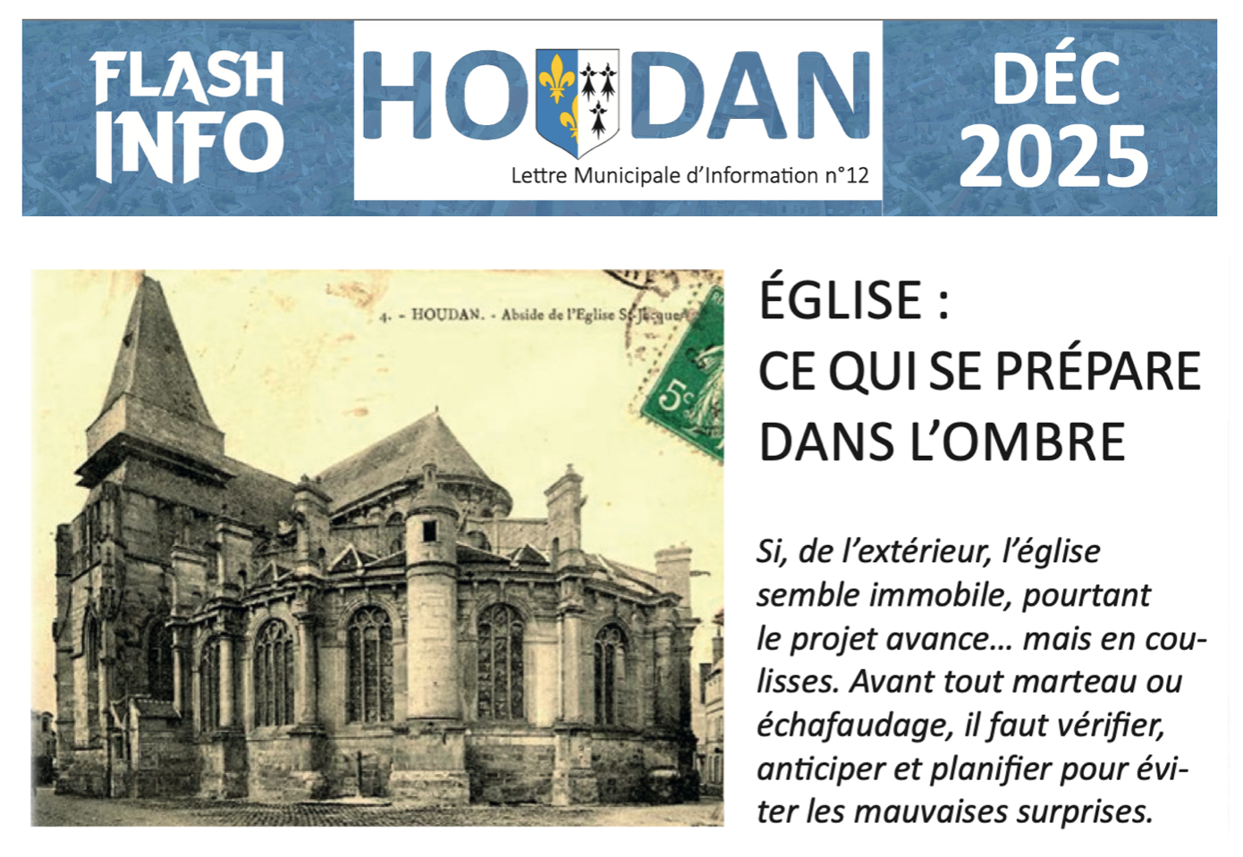 Décembre 2025 : le Flash Info de la Ville de Houdan fait le point sur la campagne de restauration … déjà bien engagée par la commune … et encore peu visible par tous !